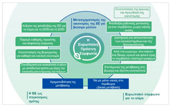 Το ευρωπαϊκό “green [new] deal” που κατ’ αρχήν προβλέπει δημόσιες και ιδιωτικές επενδύσεις 1 τρισεκατομυρίου ευρώ είναι ένα σχέδιο καπιταλιστικής αναδιάρθρωσης πολλών στοχεύσεων. Η “προστασία του κλίματος” είναι, βέβαια, η σημαία. Τα ουσιαστικά στοιχεία του όμως είναι: