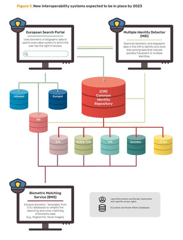 Η μεγα-βάση ονομάζεται CIR (Common Identity Repository) και η υλοποίηση της εγκρίθηκε από την ευρωβουλή στις 15 Απρίλη του 2019. Ο στόχος είναι να ενοποιήσει όλες τις υπάρχουσες βάσεις δεδομενων στην ε.ε5, με στοιχεία πάνω από 350 εκ. ανθρώπων, που περιλαμβάνουν αρχεία ταυτοτήτων (όνομα, ημερομηνία γέννησης, αριθμούς διαβατηρίων κ.α) και βιομετρικά δεδομένα (δακτυλικά αποτυπώματα και φωτογραφίες προσώπων, αρχικά), και θα είναι η τρίτη μεγαλύτερη βάση βιομετρικών δεδομένων, μετά από την κίνα και την ινδία.