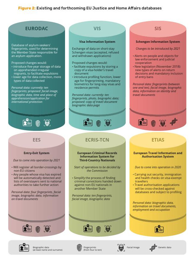 Τον Ιούνιο του 2020, ο οργανισμός eu-LISA υπέγραψε με τουλάχιστον δύο εταιρείες, την IDEMIA και την Sopra Steria, για την υλοποίηση μιας βιομετρικής βάσης δεδομένων, περίπου 400 εκ. «υπήκοων τρίτων χωρών», μέχρι το 2022. Το αν αυτά τα βιομετρικά δεδομένα θα μείνουν στα δακτυλικά αποτυπώματα και τις εικόνες προσώπου, δεν μπορούμε να το γνωρίζουμε ακόμα.