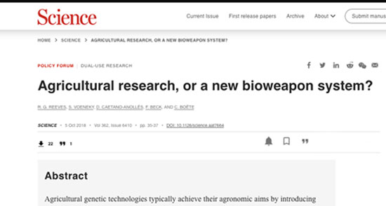 Έρευνα για την αγροτική παραγωγή ή ένα νέο σύστημα βιολογικών όπλων;