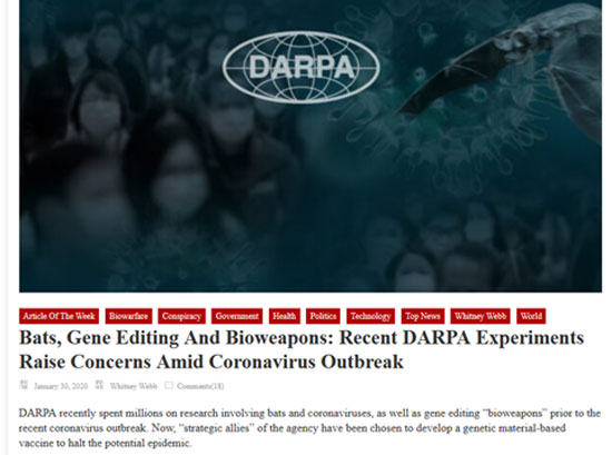 Ο Martin υποστηρίζει ότι στις 5 Ιούνη του 2008 η αμερικανική DARPA εξεδήλωσε επίσημο ενδιαφέρον για την οικογένεια των κορωνοϊών, υπονοώντας ότι αυτό το ενδιαφέρον εκδηλώθηκε μέσα από αιτήσεις πατενταρίσματος κορωνοϊών απ’ την μεριά συνεργαζόμενων φαρμακοβιομηχανιών. Εκτιμάμε, ξέροντας τα βασικά για τον μιλιταριστικό τεχνολογικό βραχίονα των ηπα, ότι ενδιαφέρον υπήρχε πολύ νωρίτερα αλλά ότι να ήταν ανεπίσημο μέχρι εκείνη τη στιγμή. Η ενεργή παρουσία της DARPA σ’ όλη την διαδρομή της “ανάπτυξης” διάφορων τεχνικών γενετικής επέμβασης στο ανθρώπινο ανοσοποιητικό σύστημα είναι καλά καταγεγραμμένη, παρότι καταλαβαίνουμε ότι μια τεχνο-στρατιωτική υπηρεσία δεν λέει όλα τα κατορθώματά της. Πράγμα που σημαίνει πως είναι ανακατεμένη σε πολύ περισσότερα απ’ τα γνωστά.