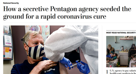 Πώς, όμως, θα γινόταν να διεξάγεται ένας καπιταλιστικός πόλεμος κατάκτησης και ελέγχου της ζωής όλων των ειδών γενικά και της ανθρώπινης ζωής ειδικά χωρίς την ενεργό συμμετοχή κορυφαίων μιλιταριστικών οργανισμών σαν την DARPA; Στις 20 Ιούλη του 2020, κι ενώ η πρώτη φάση της άγριας υγιεινιστικής τρομοεκστρατείας είχε ολοκληρωθεί, η καθεστωτική Washington Post πανηγύριζε και, ταυτόχρονα, εξοικείωνε το κοινό της με την θεραπευτική αξία του τεχνο-μιλιταρισμού κάτω απ’ τον τίτλο Πώς μια μυστική υπηρεσία του Πενταγώνου έσπειρε το έδαφος για μια γρήγορη θεραπεία του κορωνοϊού11. Εκεί μπορούσε ο καθένας να διαβάσει πόσο σημαντική είναι η μιλιταριστική “σπορά”: