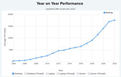 Η πορεία της απόδοσης των επεξεργαστών στους προσωπικούς υπολογιστές ανά έτος, μετρημένη σε μια κλίμακα πόντων ενός site που ασχολείται με σχετικές μετρήσεις.