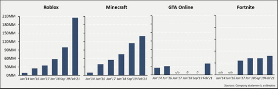 Οι 4 μεγαλύτερες εικονικές πλατφόρμες και ο αριθμός των ενεργών χρηστών ανα περιόδους. Και οι τέσσερις αρχικά ήταν online βιντεοπαιχνίδια που στην πορεία αναβαθμίστηκαν σε “πλατφόρμες”, αφού δίνανε (προγραμματίζανε) σταδιακά στους χρήστες μεγαλύτερη ελευθερία κινήσεων και ποικιλία δραστηριοτήτων, καθώς και την δυνατότητα δημιουργίας δικών τους εικονικών κόσμων όπου άλλοι χρήστες μπορούσαν να επισκεφτούν κοκ.