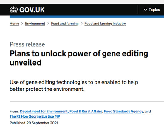 Όπως έγινε με την μαζική πλαστογραφία / εξαπάτηση των δήθεν “εμβολίων”, όπου οι mRNA πλατφόρμες γενετικής τροποποίησης των κυττάρων προωθήθηκαν σαν αθώα, συνηθισμένα εμβόλια έτσι ώστε οι πληθυσμοί να μην καταλάβουν και να μην αντιδράσουν, έτσι και τώρα βρίσκεται σε εξέλιξη μια ανανεωμένη εκστρατεία πλαστογραφίας / εξαπάτησης σε ότι αφορά τις σχεδιασμένες, εμπορικά εκμεταλλεύσιμες μεταλλάξεις φυτών και ζώων: αν και ο όρος gene editing (που σημαίνει: γενετική κοπτοραπτική…) αναφέρεται εδώ κι εκεί, προβάλλεται σαν κάτι διαφορετικό απ’ αυτό που είναι πραγματικά, κατευναστικά, καθησυχαστικά, μιας και ο “πολύς κόσμος” δεν καταλαβαίνει, και αδιαφορεί να καταλάβει. Ταυτόχρονα, όπως ακριβώς δημιουργήθηκε δημαγωγικά η ιδέα μιας “υγιειονομικής κρίσης” κατασκευάζεται τώρα η ιδέα της “διατροφικής κρίσης”, μιας κατάστασης έκτακτης ανάγκης που περνάει απ’ το στομάχι, για να νομιμοποιηθεί σα “σωτηρία” η γενετική και οι διάφορες επιθετικές, νοσηρές, καταστροφικές βιοτεχνολογίες.