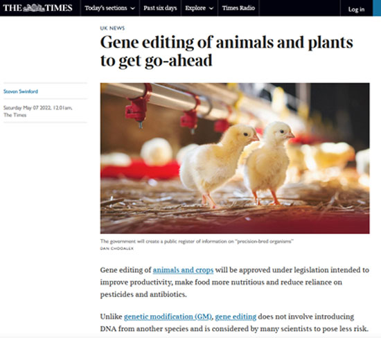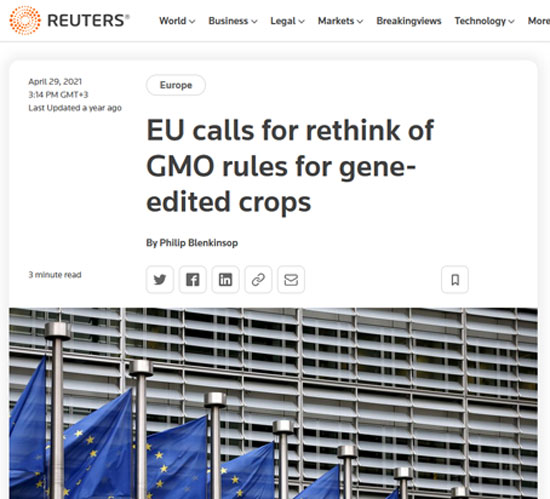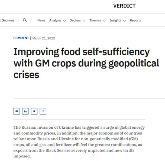 “Η σύγκρουση Ουκρανίας – Ρωσίας έχει δείχξει την ευαισθησία των παγκόσμιων και των Ευρωπαϊκών διατροφικών αλυσίδων” λέει το κάτω άρθρο, για να συμπληρώσει ότι σ’ όλο τον κόσμο γίνεται αγώνας για να φτάσουν τις ηπα στην απελευθέρωση του gene editing αλλά και στην απομάκρυνση (της ιδέας) περί GMOs… “Καμμία σχέση!!!”….
