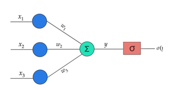 Το δεύτερο ζήτημα που χρειάζεται διευκρίνιση είναι το πώς η εξίσωση w1 x a1 + w2 x a2 = b μπορεί να αντιστοιχεί σε ένα νευρωνικό δίκτυο. Το πιο βασικό και απλό νευρωνικό δίκτυο είναι το λεγόμενο perceptron και αποτελείται από έναν μοναδικό κόμβο – νευρώνα. Αυτός δέχεται μια σειρά από εισόδους (a1, a2, κ.ο.κ) και καθεμία από αυτές τις εισόδους συνοδεύεται και από ένα βάρος (w1, w2, κ.ο.κ. αντίστοιχα). Αυτό που κάνει ο κόμβος είναι να πολλαπλασιάζει κάθε είσοδο με το αντίστοιχο βάρος της (w1 x a1, w2 x a2, κ.ο.κ.), μετά να προσθέτει όλα τα επιμέρους αποτελέσματα των πολλαπλασιασμών (w1 x a1 + w2 x a2 + …) για να παραγάγει μια πρώτη έξοδο b και στο τέλος να περνάει αυτήν την έξοδο από ένα κατώφλι, όπως έχουμε ήδη περιγράψει. Πειράζοντας τώρα τα διάφορα βάρη, μπορούμε να «σπρώξουμε» το perceptron προς μια επιθυμητή συμπεριφορά, π.χ., να προσομοιώνει τη λογική σύζευξη, τη λογική διάζευξη ή άλλες πράξεις λογικού (και μη) τύπου. Το πείραγμα των βαρών αυτών προς συγκεκριμένη κατεύθυνση είναι αυτό που στη σχετική φιλολογία αποκαλείται «εκπαίδευση» του δικτύου και φυσικά δεν εκτελείται χειροκίνητα (όπως απλουστευτικά παρουσιάσαμε παραπάνω), αλλά με κατάλληλους αλγορίθμους.