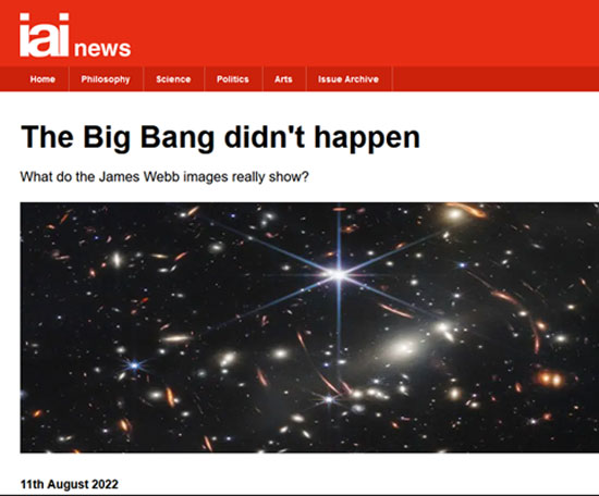 Πανικός!!! Πράγματι. Τα ευρήματα του JWST δεν συμφωνούσαν καθόλου με τις προβλέψεις του Big Bang: πάρα πολλοί γαλαξίες, πολύ «παλιοί», πολύ μικροί και πολύ καλοσχηματισμένοι ΔΕΝ ήταν εκείνο που προβλεπόταν να υπάρχει «εκεί» αν αυτό το «πανάρχαιο εκεί» ήταν σύμφωνα με το Big Bang το «πέρα-μακρυά» ενός διαρκώς επεκτεινόμενου / διαστελλόμενου σύμπαντος. Σύμφωνα με τα πρώτα στοιχεία που επεξεργάστηκαν οι συγγραφείς του Panic! οι εικόνες του JWST έδειχναν την ύπαρξη 10 φορές περισσότερων γαλαξιών απ’ όσους προβλέπονταν απ’ την θεωρία της Μεγάλης Έκρηξης∙ και επιπλέον πολύ καλοσχηματισμένων, με καμία ένδειξη «συγχώνευσης» μεταξύ τους, και πάλι αντίθετα απ’ ό,τι προέβλεπε η θεωρία της Μεγάλης Έκρηξης. Για να γίνουν τα πράγματα ακόμα χειρότερα, οι γαλαξίες που εντόπιζε το JWST θα έπρεπε να είναι ηλικίας 400 έως 500 εκατομμυρίων ετών (μετά την Μεγάλη Έκρηξη). Προς μεγάλη έκπληξη η ηλικία κάποιων απ’ τους ήλιους τους προσδιορίστηκε σε πάνω από 1 δισεκατομμύριο χρόνια.