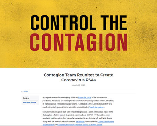 Ο βασικός σεναριογράφος (Scott Burns) έκανε εντατικά φροντιστήρια, πρώτα με τον συνταξιούχο επιδημιολόγο Lawrence Brilliant, στη συνέχεια με τον πανεπιστημιακό παθολόγο Walter lan Lipkin, και εντέλει με ειδικούς του Π.Ο.Υ.: ουσιαστικά εκείνα που μορφοροποιήθηκαν ως βασικά σεναριακά στοιχεία του Contagion, ήταν τα λίγα που είχαν γίνει και τα περισσότερα που δεν είχαν γίνει στις δύο προηγούμενες (αποτυχημένες) προσπάθειες υγιεινιστικών τρομοεκστρατειών, πρώτα με την “γρίπη των πτηνών” το 2004, και ύστερα με την “γρίπη των χοίρων” το 2009. Ουσιαστικά λοιπόν το σενάριο του 2011 ήταν ο σκελετός της “γραμμής” του Π.Ο.Υ. (και των αφεντικών του) ήδη. Εκείνο που δεν είχε συμβεί ακόμα (το 2010 και το 2011) ήταν η εξαγορά / ιδιωτικοποίηση του Π.Ο.Υ. (και της “γραμμής” του) απ’ τους “μεγάλους φιλάνθρωπους” και τις φαρμακομαφίες1.