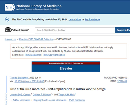 Η ιδέα για το ξεπέρασμα αυτών των …. αδυναμιών (!!!) στην οργανωμένη, μαζική παραγωγή νοσηρότητας υπήρχε πριν απ’ την τρομοεκστρατεία: ήταν η κατασκευή συνθετικών mRNA που όχι απλά θα κάνουν μια φορά πειρατεία μέσα σε κάθε κυτταρικό ριβόσωμα, αλλά θα μπορούν να «αυτοπολλαπλασιάζονται» μέσα εκεί, επιτυγχάνοντας διάρκεια στην αιχμαλωσία των κυττάρων χωρίς εξωτερικές παρεμβάσεις, καινούργιες σύριγγες, καινούργια φυαλίδια, καινούργιες μεταφορές και logistics, κλπ κλπ! Για να το πούμε διαφορετικά: το κάθε μολυσμένο, αλλοτριωμένο κύτταρο (πολλά εκατομμύρια τέτοια σε κάθε οργανισμό!) να μην μπορεί να απαλλαγεί απ’ την δηλητηρίασή του μέσω της αναμενόμενης φυσικής διάλυσης του συνθετικού, του αλλότριου mRNA, και της αντικατάστασής του απ’ το φυσικό, παρά μόνο αν σκοτωθεί απ’ το (πελαγωμένο…) ανοσοποιητικό (επί εκατομμύρια φορές), με ό,τι αυτό σημαίνει για την δημιουργία αυτοάνοσων! Όχι απλά μέσω ενός αρχικού αιφνιδιασμού (που μπορεί κάποιος να είναι τυχερός και να την γλυτώσει) αλλά σαν μόνιμη κατάσταση κυτταρικής, μοριακής κατοχής!