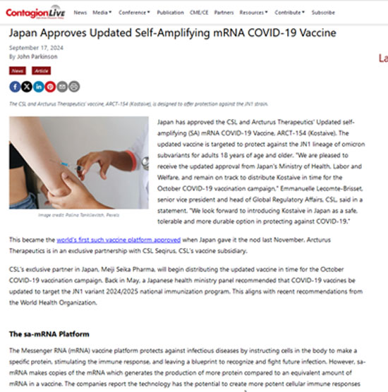 Είναι σημαντικό το αν, σε τέτοιες συνθήκες, θα προχωρήσει στην ιαπωνία η χρήση της sa-mRNA πλατφόρμας (που προορίζεται, υποτίθεται, για τους «ευάλωτους», ηλικιωμένους κλπ)∙ το αν θα κουκουλωθούν οι βέβαιες παρενέργειες∙ και το πως θα διαφημιστεί αυτό το είδος στον υπόλοιπο πλανήτη.